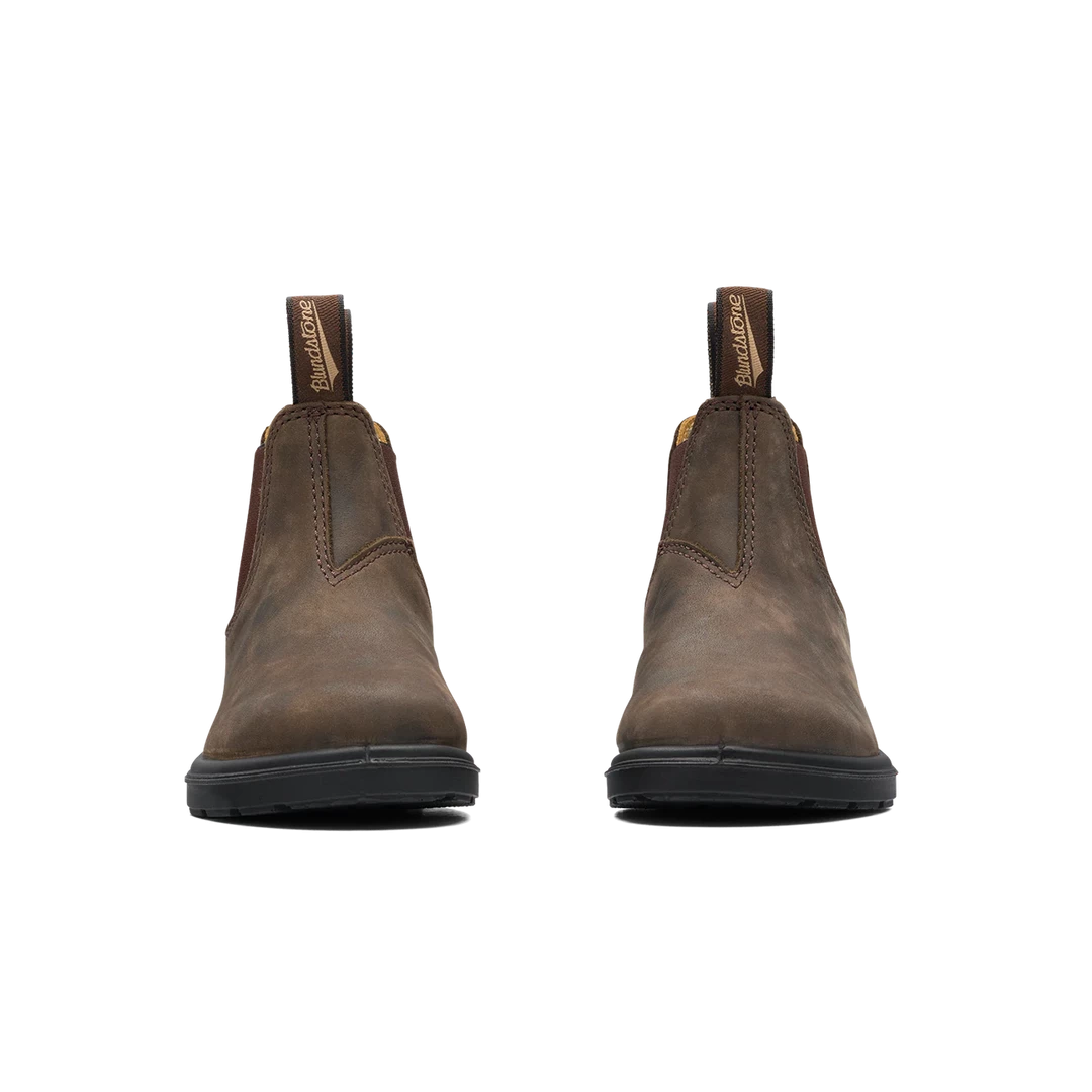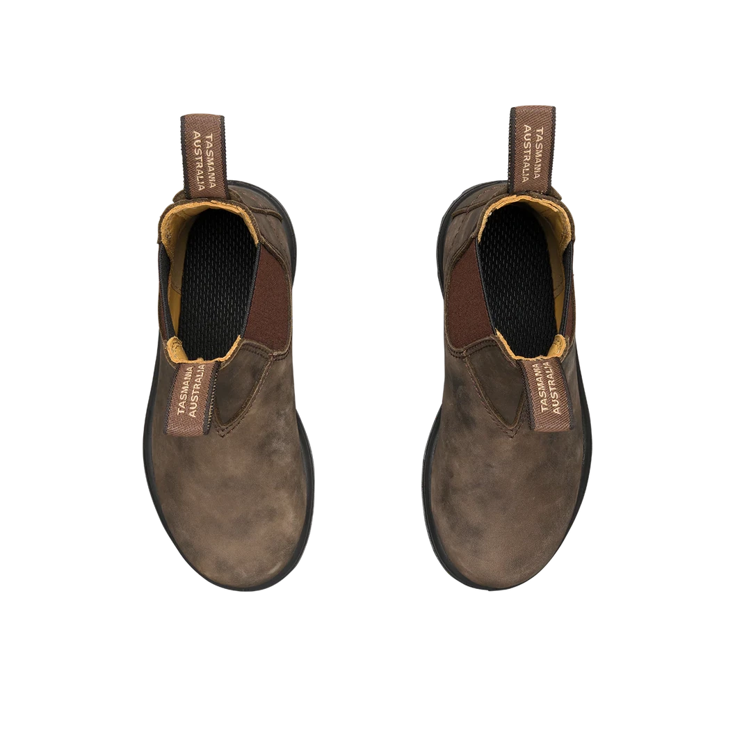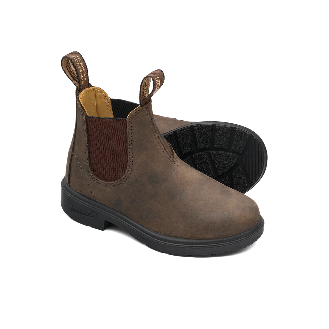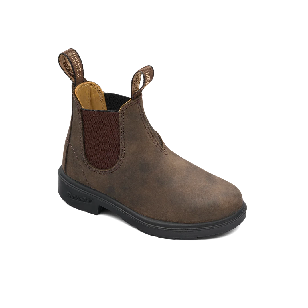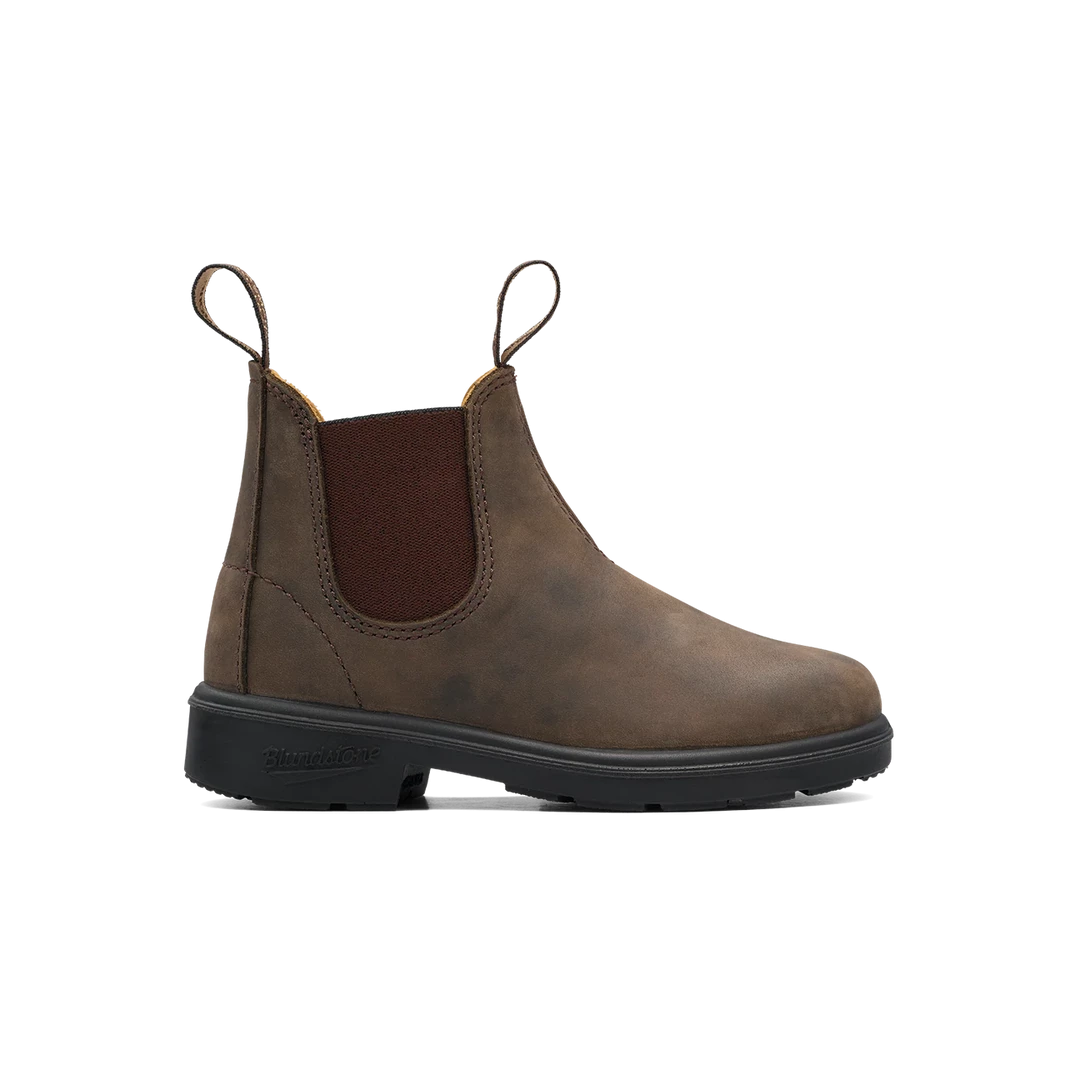 Blundstone 565 Kids Rustic Brown is Blundstone comfort and leather that ages beautifully. It’s the DIY boot every kid loves. Look Ma, no laces! Removable footbeds for months more wear. Unisex sizing.