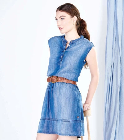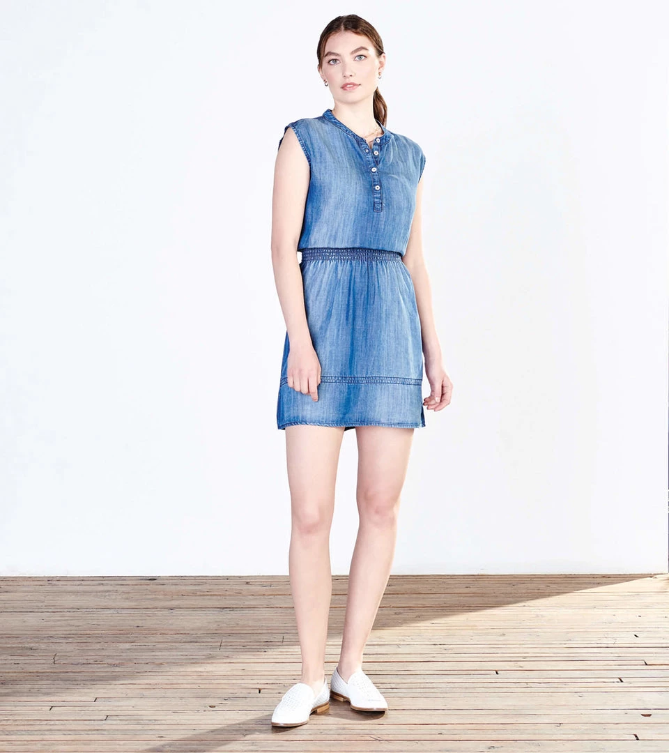 Balancing sophisticated with casual, this silky-soft shirt dress has a feminine half-button placket that scores high on style. Statement-making smocking accentuates the waist and defines your figure, while the pretty lines are finished with dropped shoulders and cap sleeves.