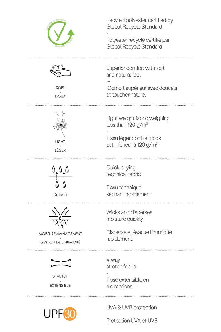 Fabric : 88% Recycled Polyester, 12% Spandex, 92g/m2, GRS approved