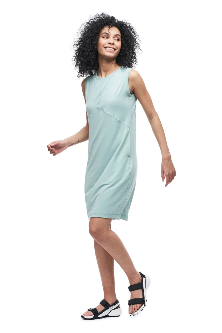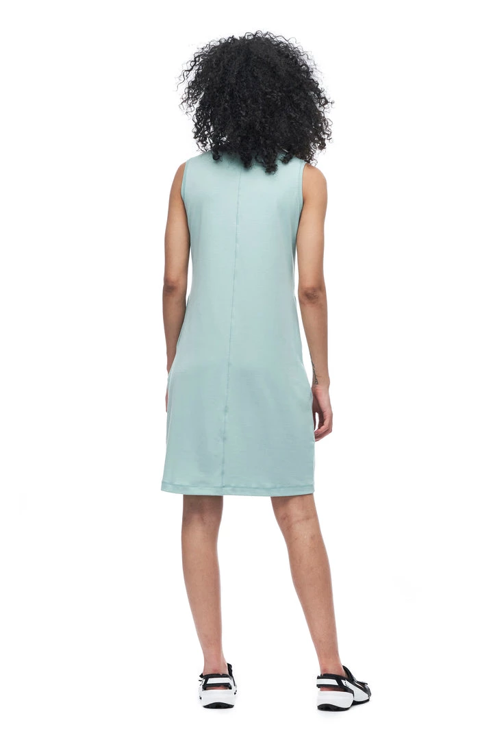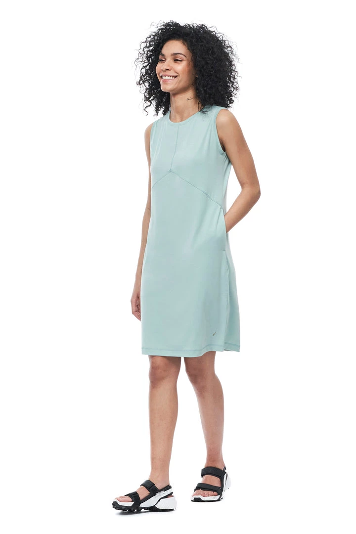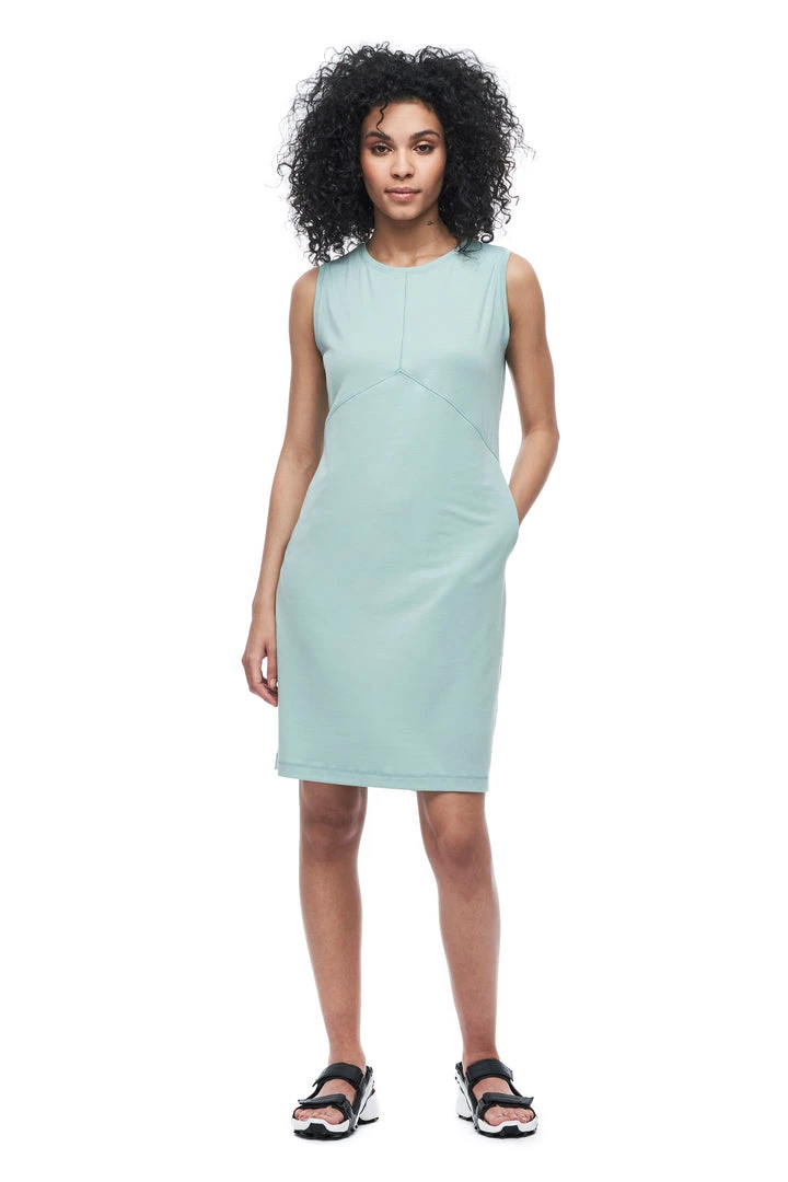 The LEVEZA sleeveless dress is made from fabric containing Lyocell, a cellulosic fiber made of wood pulp obtained from sustainable forests. Partially eco-friendly, drirelease® Lyocell ensures long-term fabric performance and maintains its softness after wash. It has moisture-wicking and fast drying properties, which minimizes odours and maximizes comfort and has a UPF rating 30+. These features make this dress versatile, great for travel and various outdoor activities.