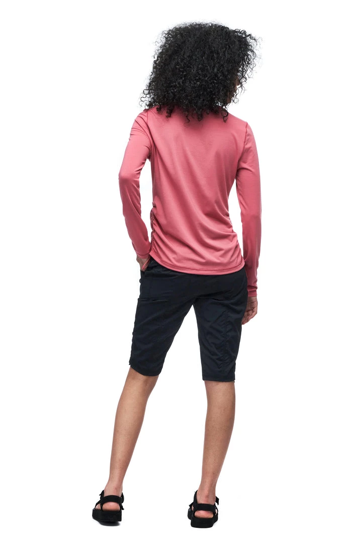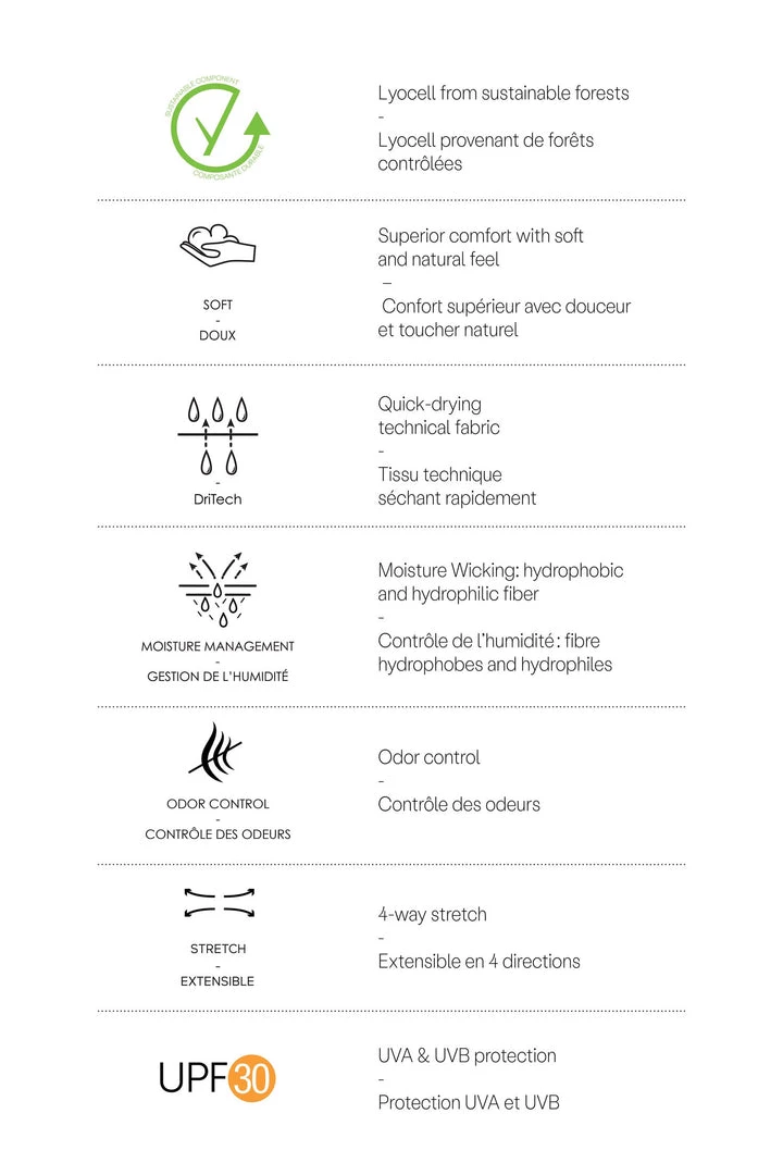 The MILGIN II long sleeve crewneck is made from fabric containing Lyocell, a cellulosic fiber made of wood pulp obtained from sustainable forests. Partially eco-friendly, drirelease® Lyocell ensures long-term fabric performance and maintains its softness after wash. It has moisture-wicking and fast drying properties, which minimizes odours and maximizes comfort and has a UPF rating 30+. You can also change the length of your shirt through the side adjustment slides for the style that suits you best. These features make this top versatile, great for travel and various outdoor activities.