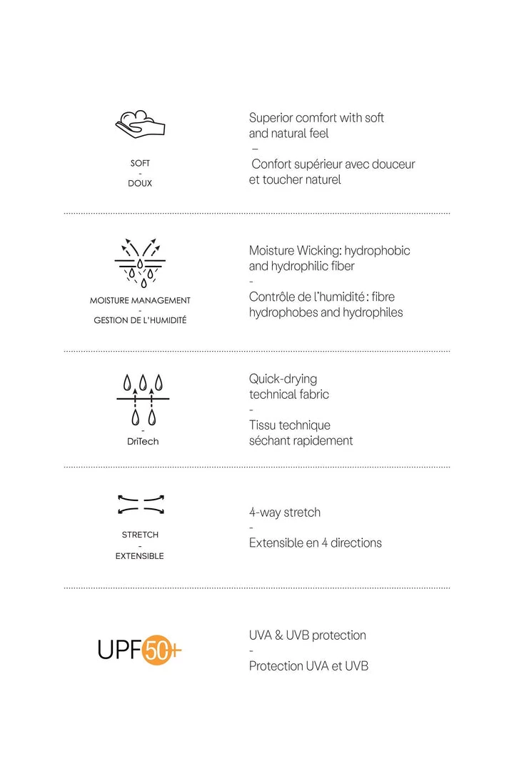 The PEKY legging is made of nylon and spandex, a fabric that is pleasant to the touch and perfect for your outdoor activities. It also has an elastic waistband to provide complete comfort for your all-day adventure. With a UPF rating of 50+, this legging is versatile, great for travel and various outdoor activities.