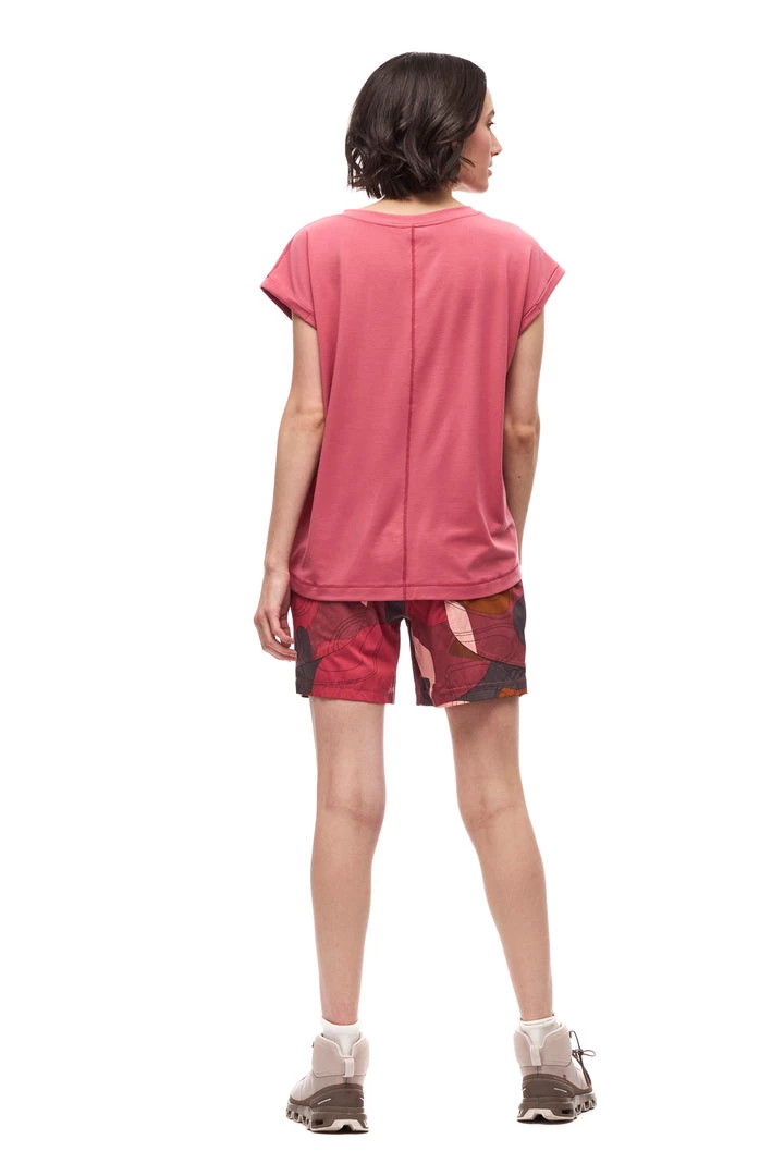 The SOFI top is made from fabric containing Lyocell, a cellulosic fiber made of wood pulp obtained from sustainable forests. Partially eco-friendly, drirelease® Lyocell ensures long-term fabric performance and maintains its softness after wash. It has moisture-wicking and fast drying properties, which minimizes odours and maximizes comfort and has a UPF rating 30+. These features make this top versatile, great for travel and various outdoor activities.
