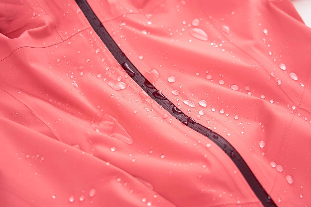 The ISLA II rain jacket has a waterproof breathable construction with 10K/10K laminate, offering breathability, waterproofness and windproofness. Also fully seam sealed, this rain jacket has a DWR protection on the fabric surface, which maintains 80% of its water repellent efficiency after 10 washes.