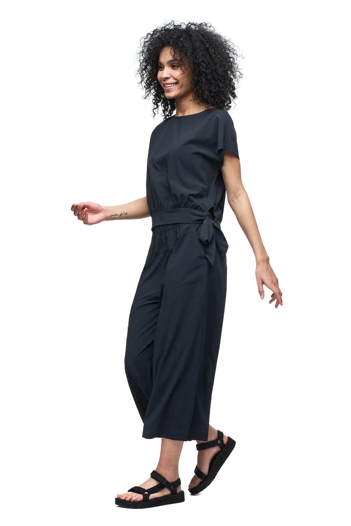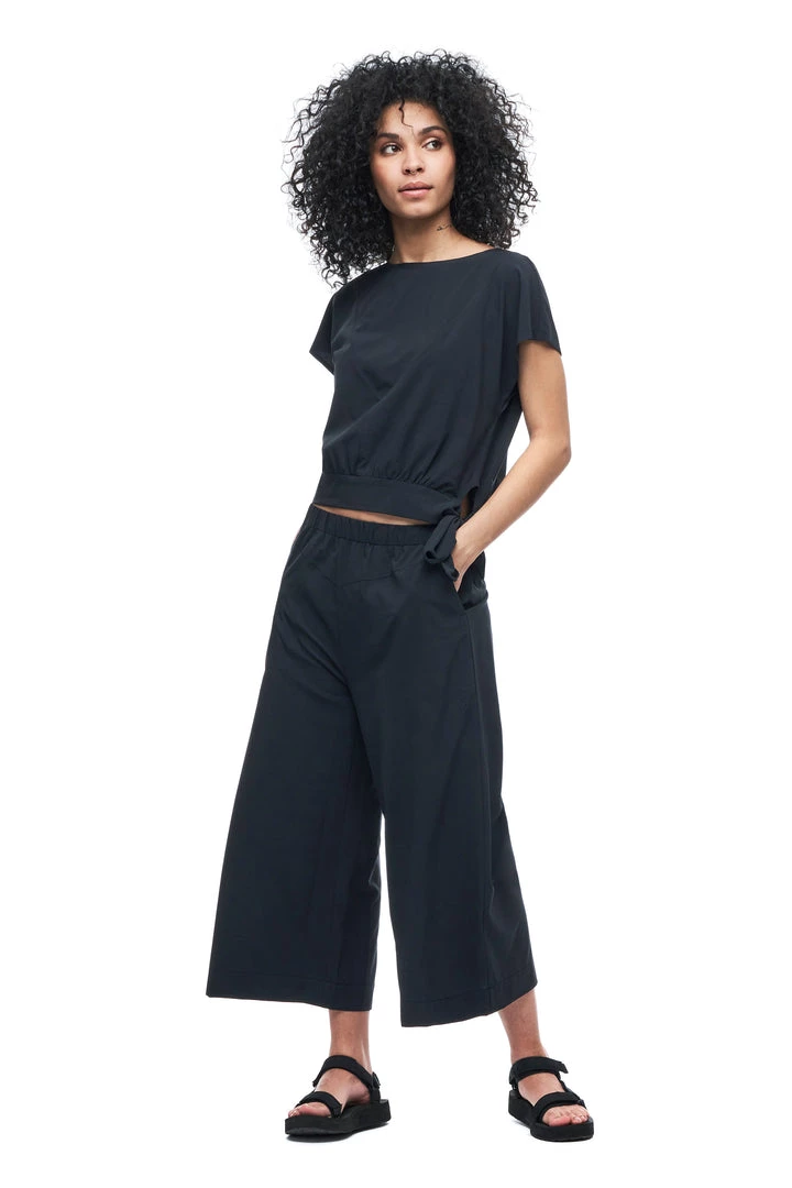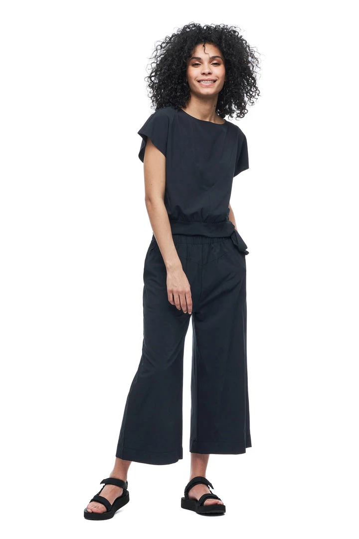 The EPESI regular waist wide leg pants is made of light woven fabric that offers comfort, lightness, softness and stretchability. The EPESI pants have an elastic waistband and back pocket with zipper closure, ideal for an active journey. The fabric dries quickly, has moisture wicking properties and has a UPF rating 30+. These features make these pants  versatile, great for travel and various outdoor activities.