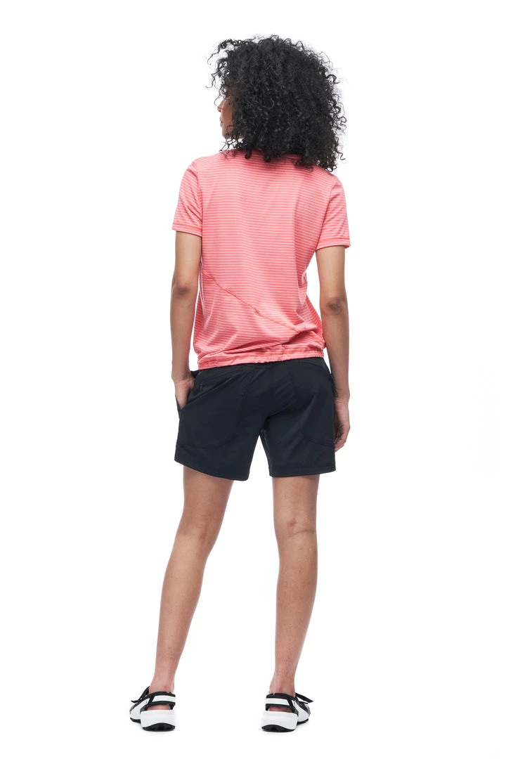The KURAK short sleeve v-neck is made from fabric containing Lyocell, a cellulosic fiber made of wood pulp obtained from sustainable forests. Partially eco-friendly, drirelease® Lyocell ensures long-term fabric performance and maintains its softness after wash. It has moisture-wicking and fast drying properties, which minimizes odours and maximizes comfort and has a UPF rating 30+. These features make this top versatile, great for travel and various outdoor activities.
