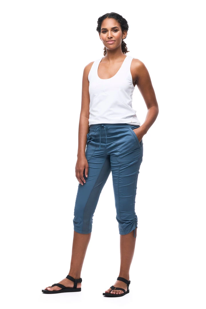 The NAKATO III pant is made of woven stretch fabric that is light, strong, and 2-way stretch. The weave offers ease of movement, dries quickly, wicks moisture and has a UPF rating 50+. The NAKATO III pant features a side slider adjustment for a shorter or longer style that suits you best. They are even more comfortable with an elastic waistband and a side slider adjustment for your outdoor activities. These features make this pant versatile, great for travel and various outdoor activities.Â