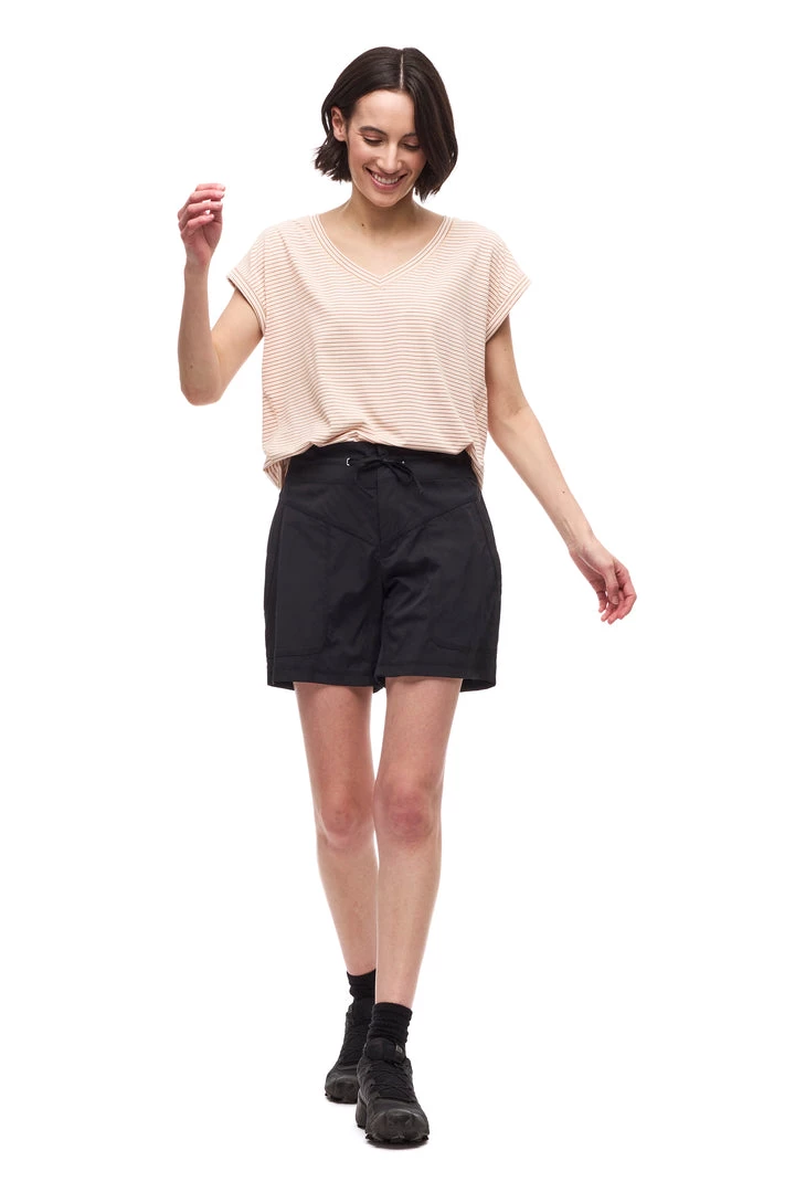 The SAHRA short is made of woven stretch fabric that is light, strong, and 2-way stretch. The weave offers ease of movement, dries quickly, wicks moisture and has a UPF rating 50+. The SAHRA shorts are the perfect piece to hug the waist with the adjustable slider and elastic. Let’s not forget the useful pockets with zippers so you don’t lose your belongings while hiking. These features make this short versatile, great for travel and various outdoor activities.Â