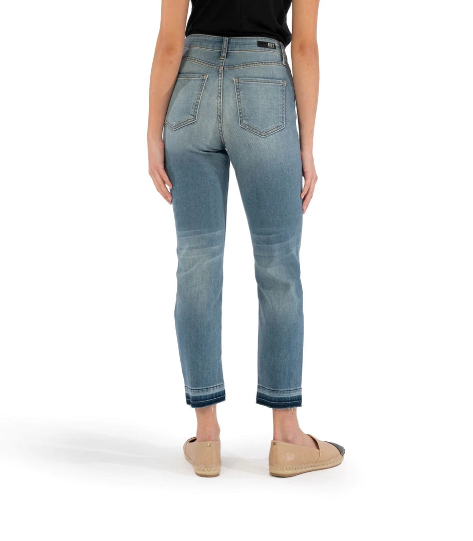 These vintage inspired wash in a ankle glazing straight leg are styled with a buttoned fly and fray trendy hem.Â