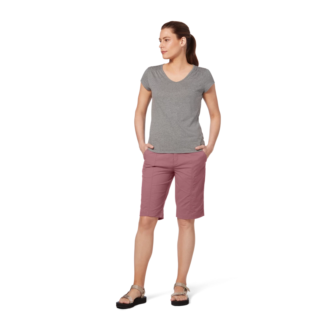 A modern take on the classic Bermuda short, these lightweight Bermuda women’s shorts are constructed from bluesign® approved Discovery stretch nylon material that is breathable, quick-drying and provides UPF 50+ sun protection. Breathability and ventilation is enhanced by roomy mesh hand pockets. Plus, a bonus zip pocket at the back keeps important items safe and secure. Take these to the beach, the campground, or wherever adventure leads you. These stretch Bermuda shorts pack up small and are wrinkle-resistant for easy travel.