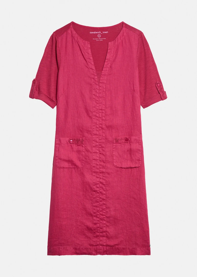 This 100% linen dress is a perfect garment when temperatures rise. It has a nice loose fit and front pockets