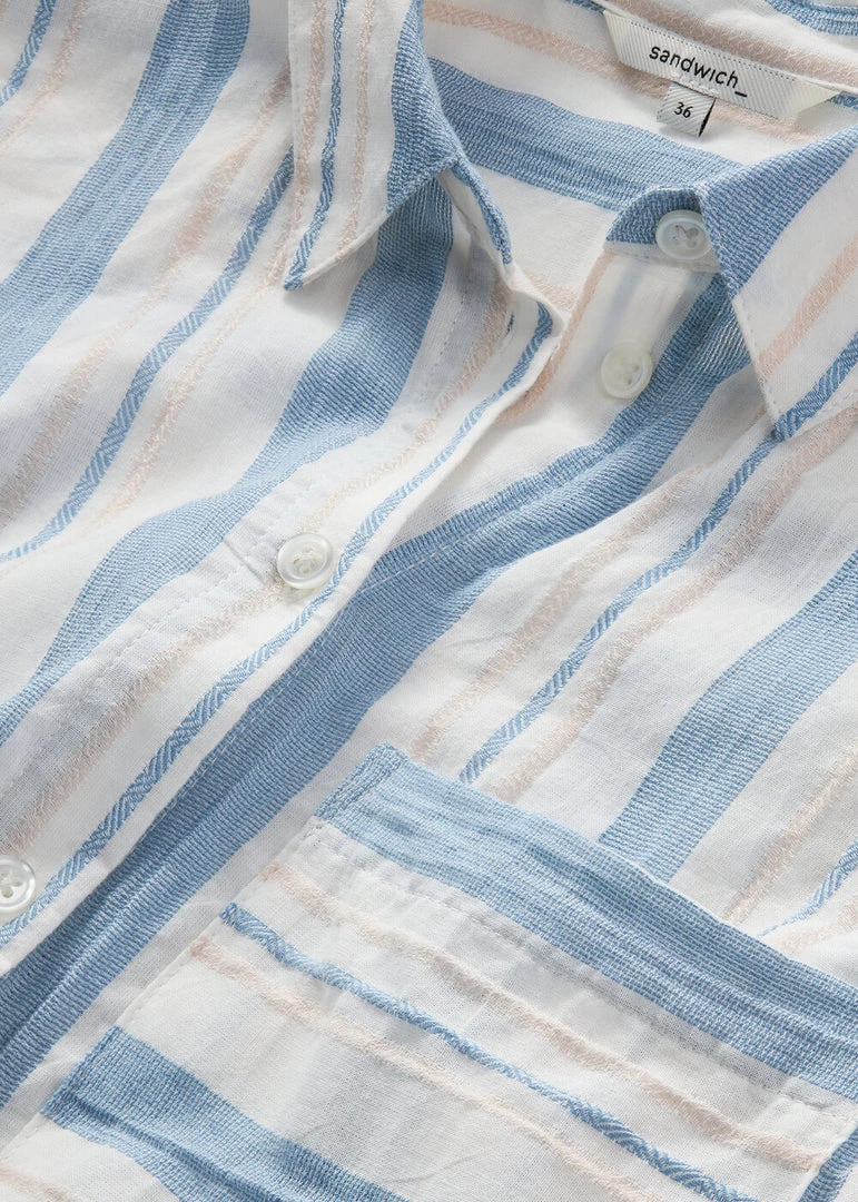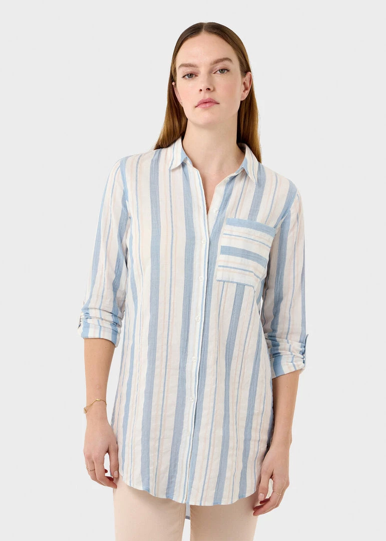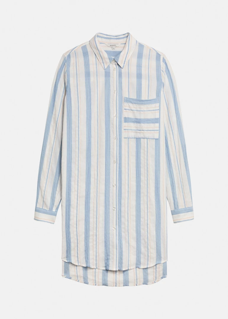 Striped blouse in a cotton/viscose quality. The blouse features a breast pocket, and the back is slightly longer than the front. Fantastic basic blouse that is easy to mix & match.
