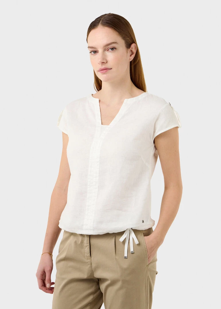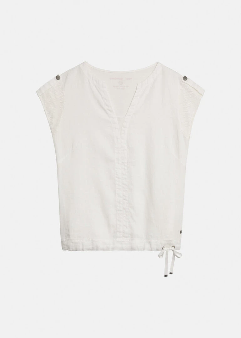 This airy linen blouse is made from 100% linen and perfect for hot summer days. The blouse features a drawstring in the hem and a mesh detail with button on the shoulders.