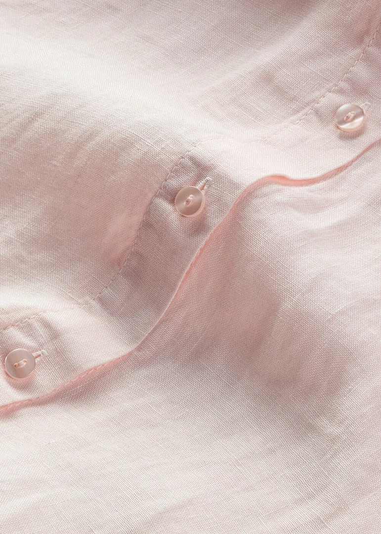 This airy linen blouse is a great basic piece. The back is slightly longer than the front. The blouse features long sleeves that can be rolled up.