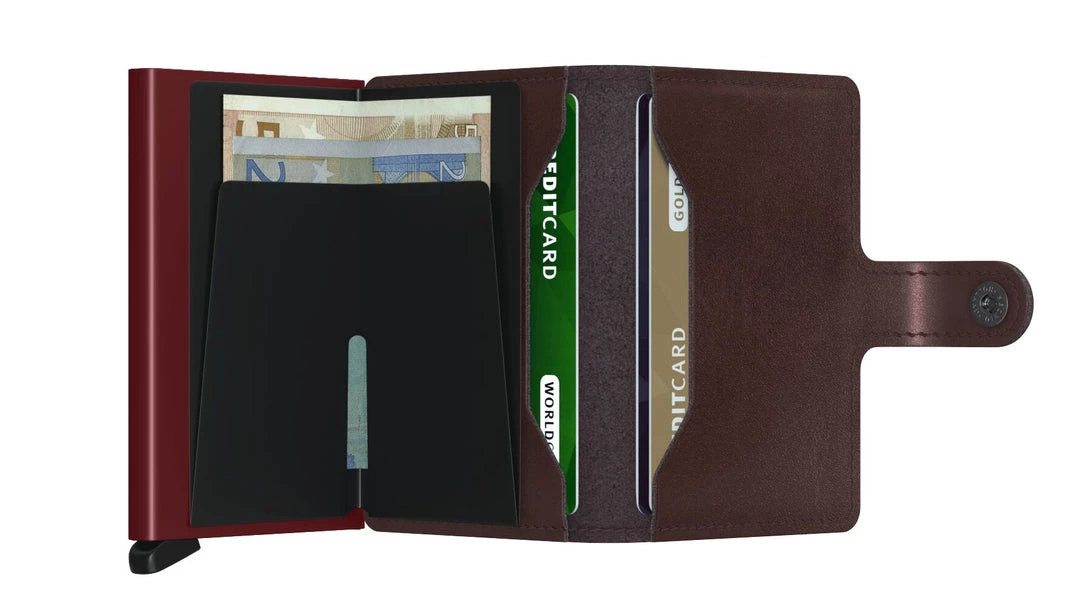 The patented mechanism allows you to slide out your cards with one simple motion, ready for immediate use. The aluminium protects from bending, breaking and unwanted wireless communication.