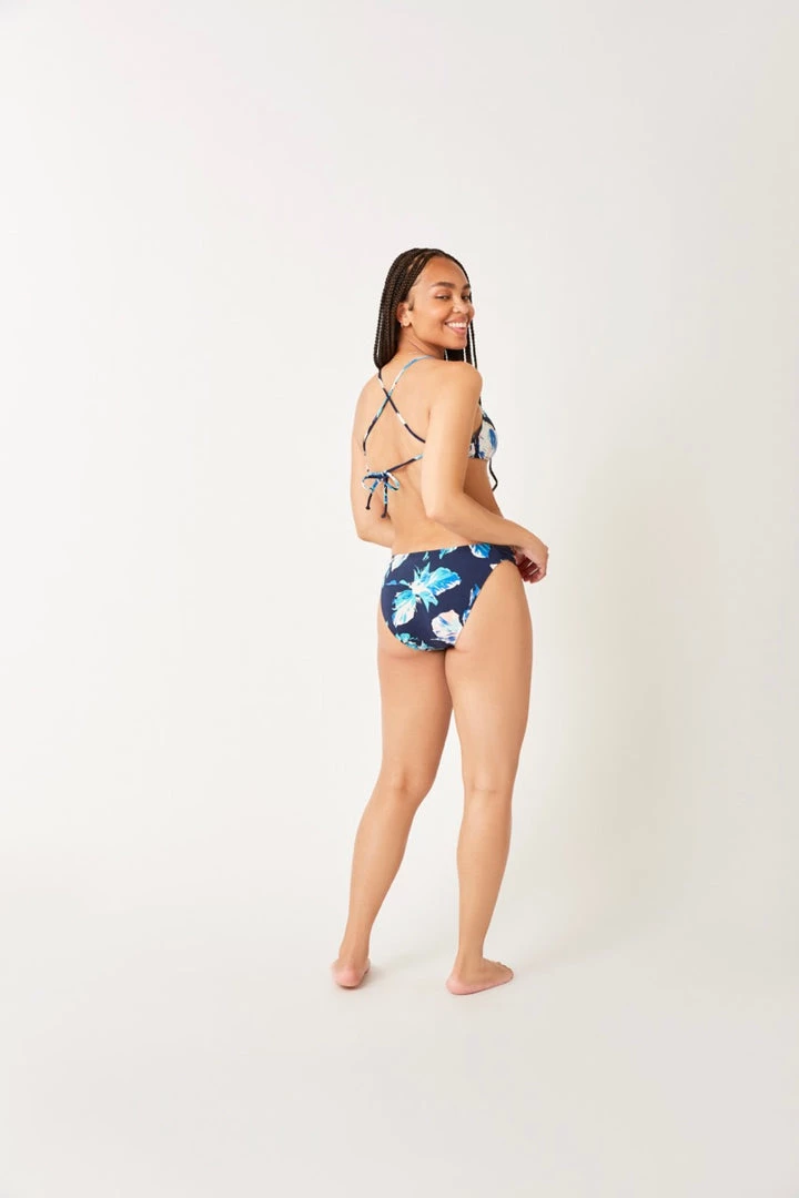 This bikini top allows for lots of skin exposure without trading off support. Criss-cross back draws is cute but not flimsy.