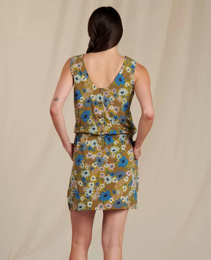 Your new favorite summer sundress, with a sporty twist. The ruched waistband sits comfortably on your hips, while V-neck styling in the front meets a scoop button closure in the back. Plus, our amazing Eco Kohilo fabric is completely sustainable, water friendly, quick-drying, moisture-wicking and has UPF 40+ coverage.